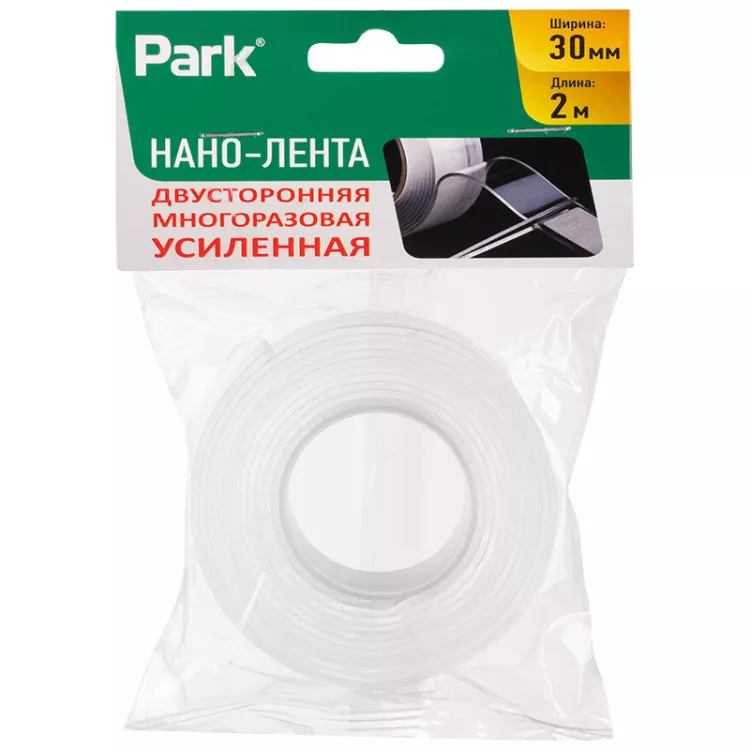 "Park" Нано-лента клейкая, двусторонняя, многоразовая, прозрач. 3смх2м