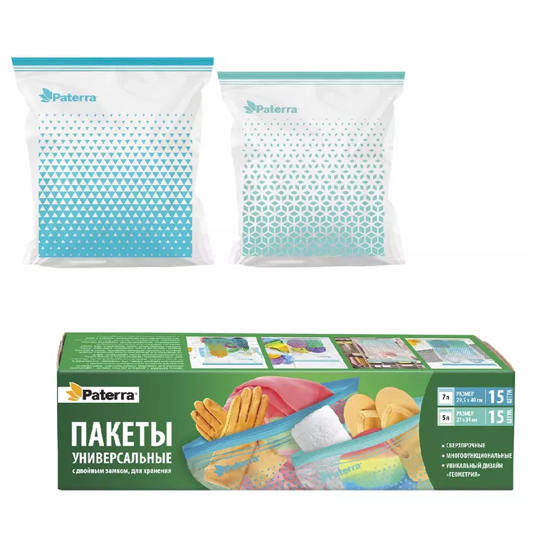 "PATERRA" Набор пакетов "Геометрия" универсал. с 2замками 30шт. 37х34см; 29,5х40см