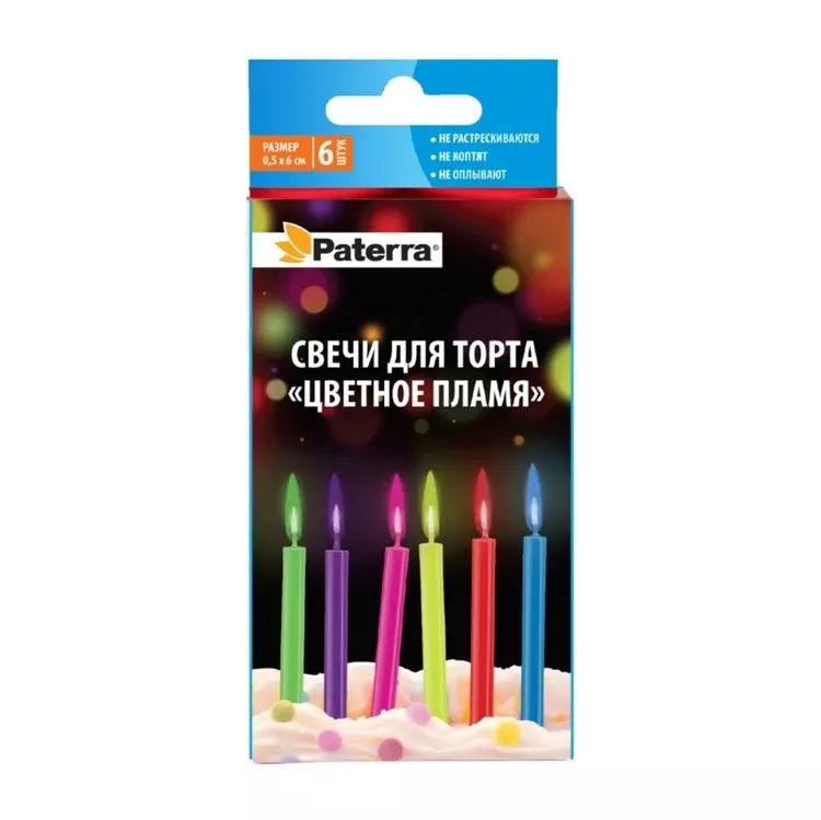 "PATERRA" Набор свечей для торта "Цветное пламя" 6шт.