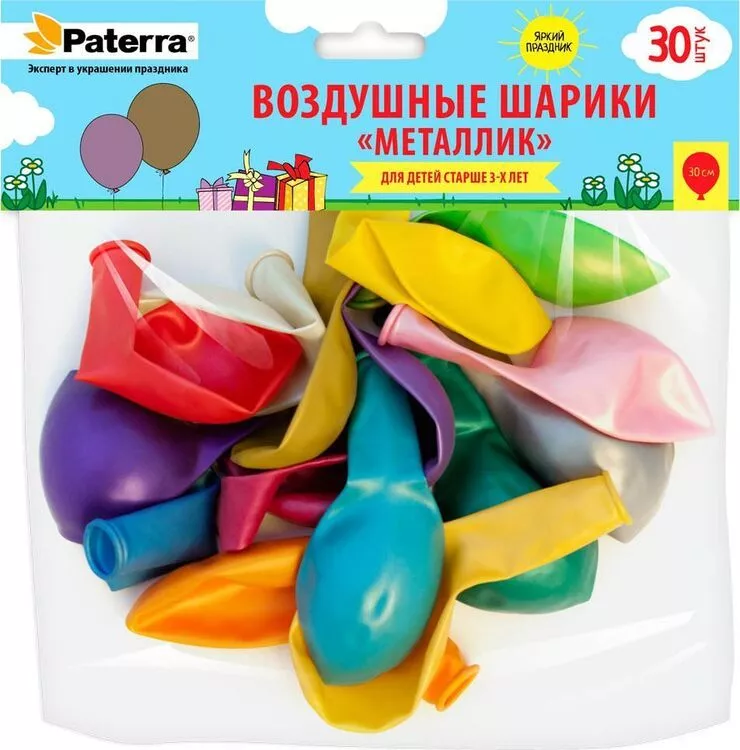 "PATERRA" Набор воздушных шаров "Металлик" 30см 30шт.