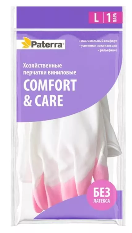 "PATERRA" Перчатки хозяйственные "Comfort&Care" размер L, цв.белый
