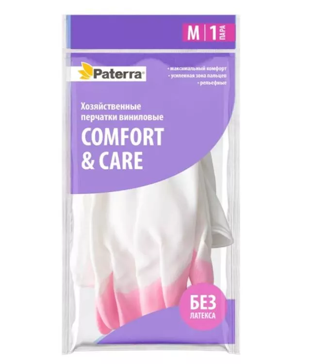 "PATERRA" Перчатки хозяйственные "Comfort&Care" размер M, цв.белый