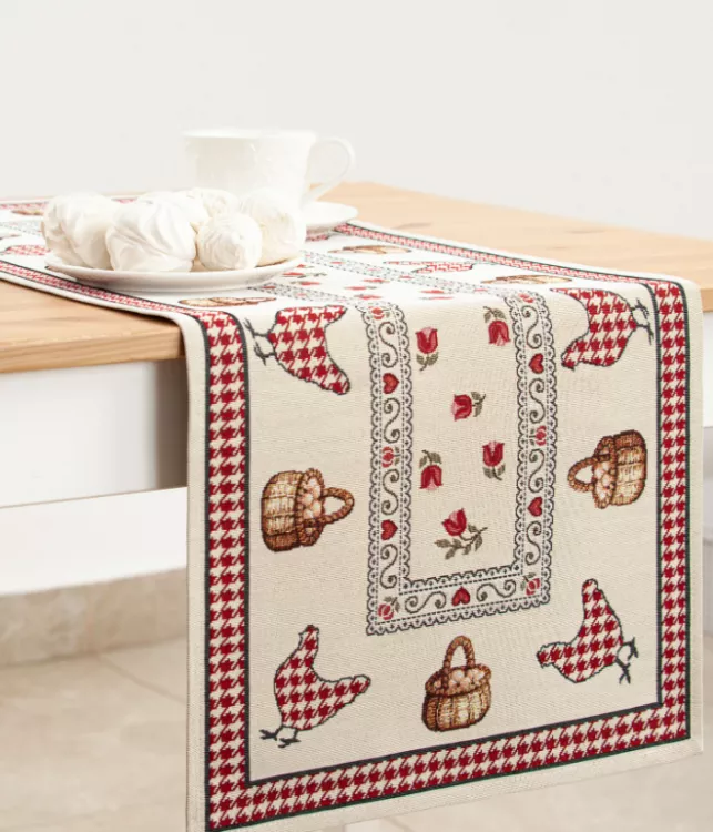 "Петушки и курочки" Дорожка на стол 44х140см, цв.красный