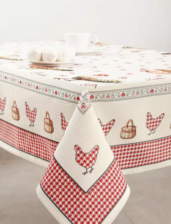 "Петушки и курочки" Скатерть 140х240см, цв.красный