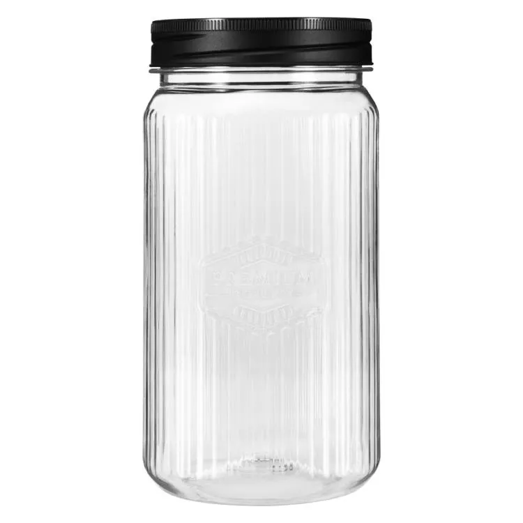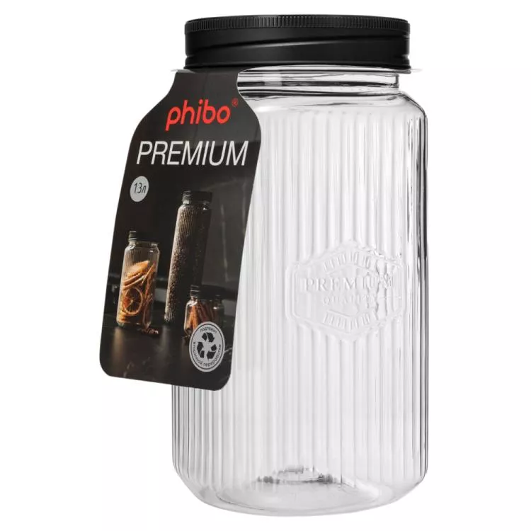 "Phibo" Банка для хранения квадратная с рельефом "PREMIUM" 1,3л цв.черный