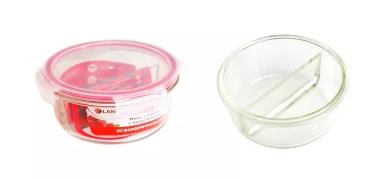 "Pink" Контейнер с разделителем стекло 0,8л круг 17х7,6см