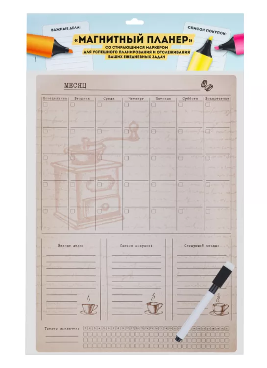 Планер магнитный "Кофе" с маркером 40х29см