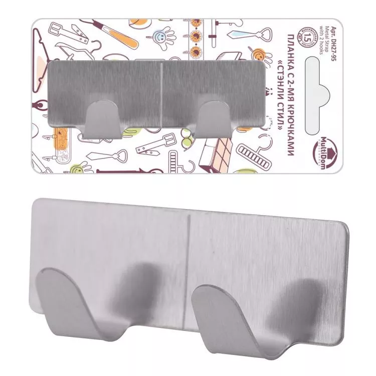 Планка с 2 крючками металлическая "Стенли Стил" 8см