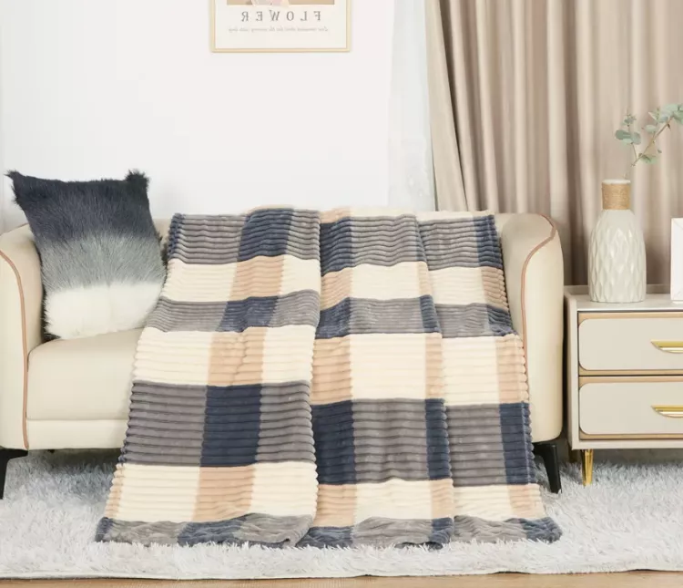 Плед Cleo "ORRIZONTE PRINT" 180х200см, велсофт, цв.бежево-серый
