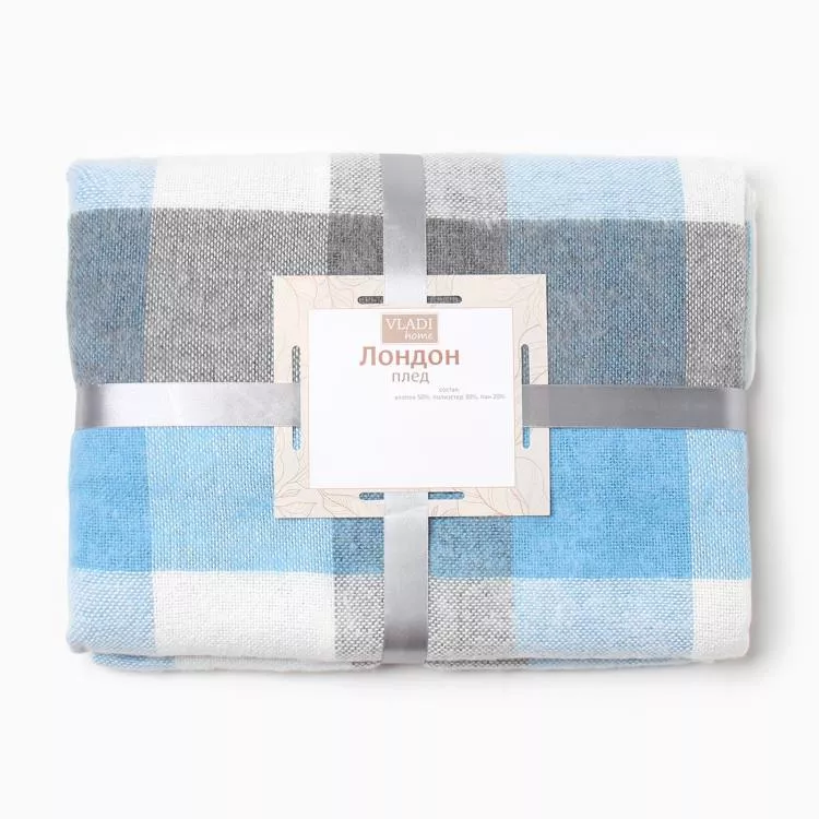 Плед "Лондон" 140х200см, бел-сер-бирюза
