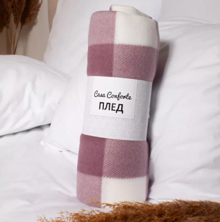 Плед " London. Клетка" 130х170см, цв.розовый, флис