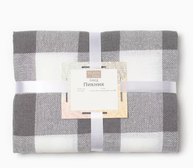 Плед "Пикник" 140х200см, бел-сер