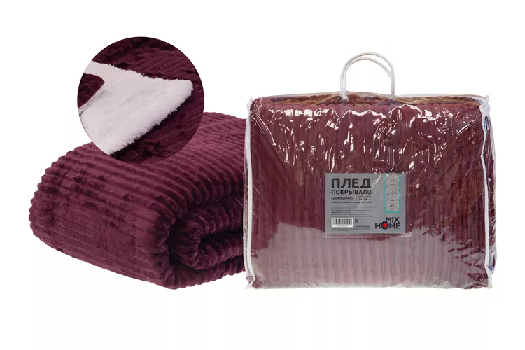Плед-покрывало "Домашний" 220х240 см, шерпа, цв.бордовый