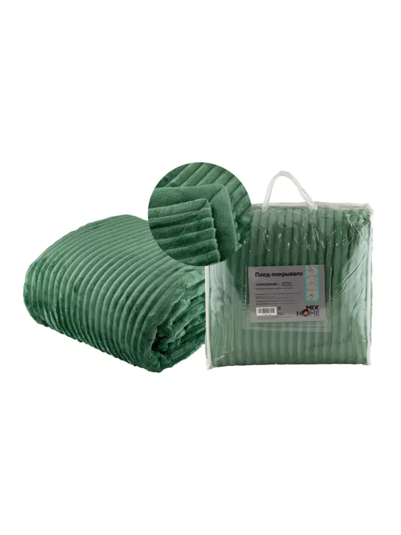 Плед-покрывало "Плюшевый" 180х220 см, жаккард, цв.зеленый