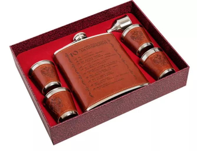 Подарочный набор "10 алкогольных заповедей": фляжка 500мл, стопки 4шт., воронка