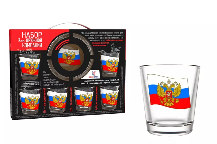 Подарочный набор "Герб на флаге" стопки 6шт-50мл., пепельница