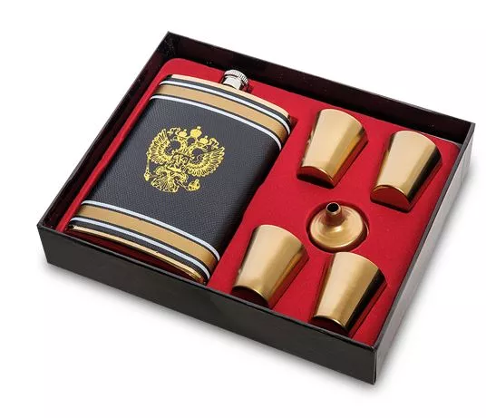 Подарочный набор "Герб России": фляжка 200мл, 4 стопки, воронка