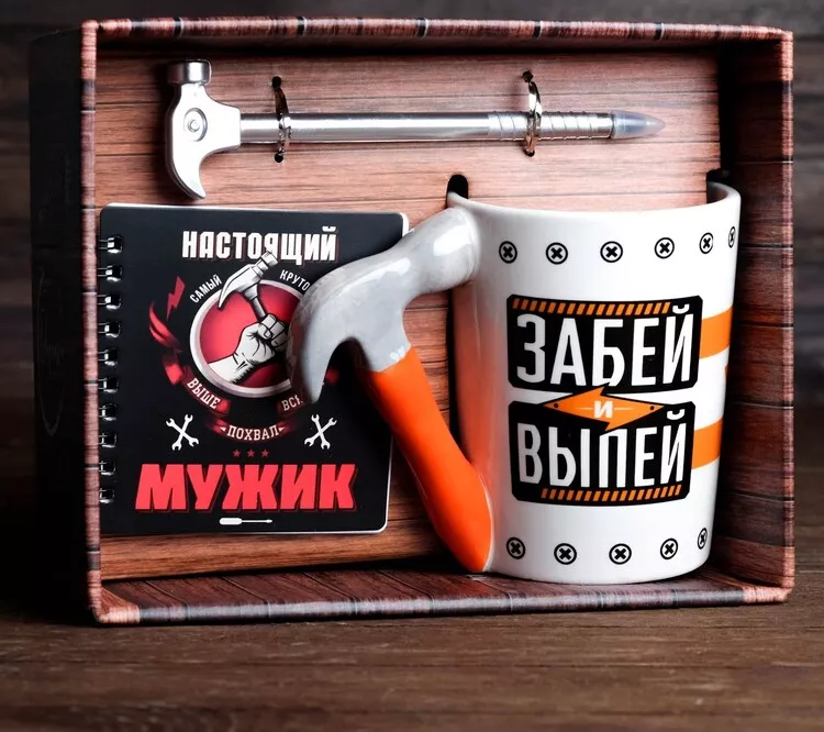 Подарочный набор "Настоящий мужик": Кружка для пива 400мл, блокнот, ручка