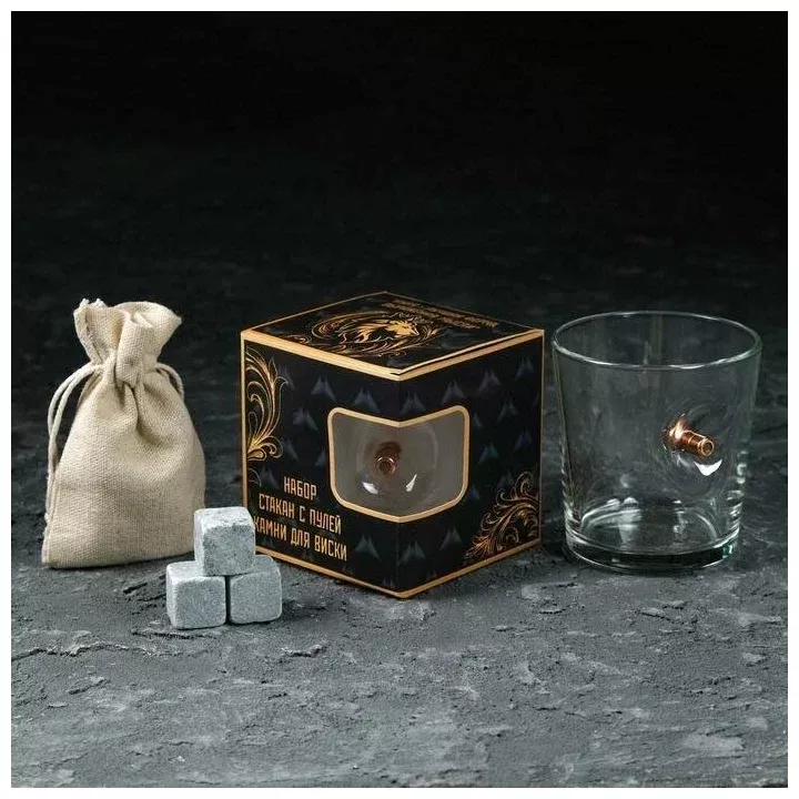 Подарочный набор "Виски" стакан с пулей 250мл, камни для виски 3шт.