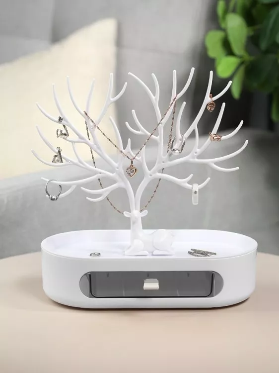 Подставка для украшений "Олень" - это стильное и практичное решение для организации вашей ювелирной коллекции. Подставка позволит Вам удобно расположить любимые ювелирные украшения и аксессуары. Материал: пластик. Размер: 26х25х13 см.