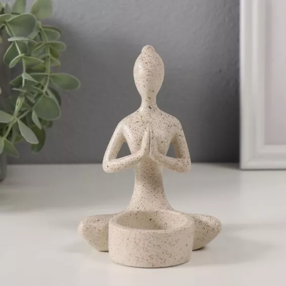 Подсвечник "Девушка. Приветствие" 8,5х8,8х11,7см, цв.белый в крапинку