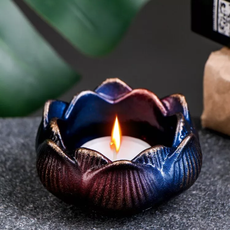 Подсвечник "Лотос" 5х8см, цв.синий космос