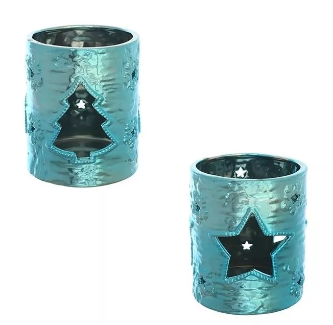 Подсвечник "Рождественские мотивы" 8,6см,цв.голубой, 2 вида