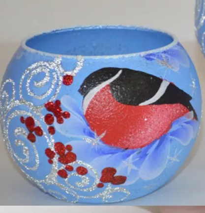 Подсвечник-шар "Снегирь и рябина" d=10см