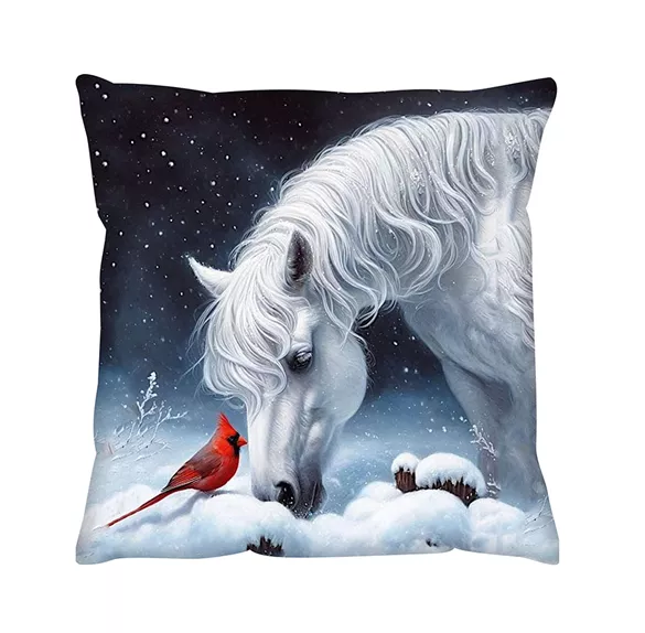 Подушка декоративная "Лошадь и зимний гость" 35х35см