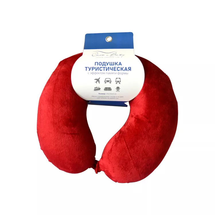 Подушка туристическая 30х30х9см, с эффектом памяти, цв.бордовый