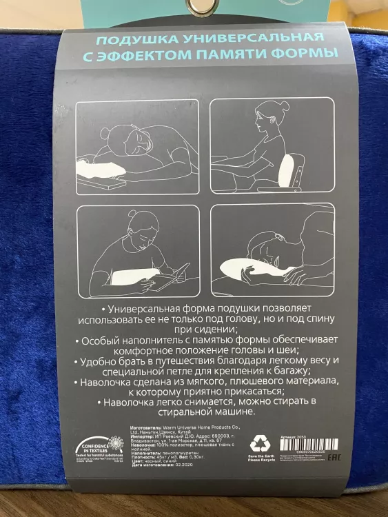 Подушка универсальная 35,5х23х6,5см, с эффектом памяти, 2цв.