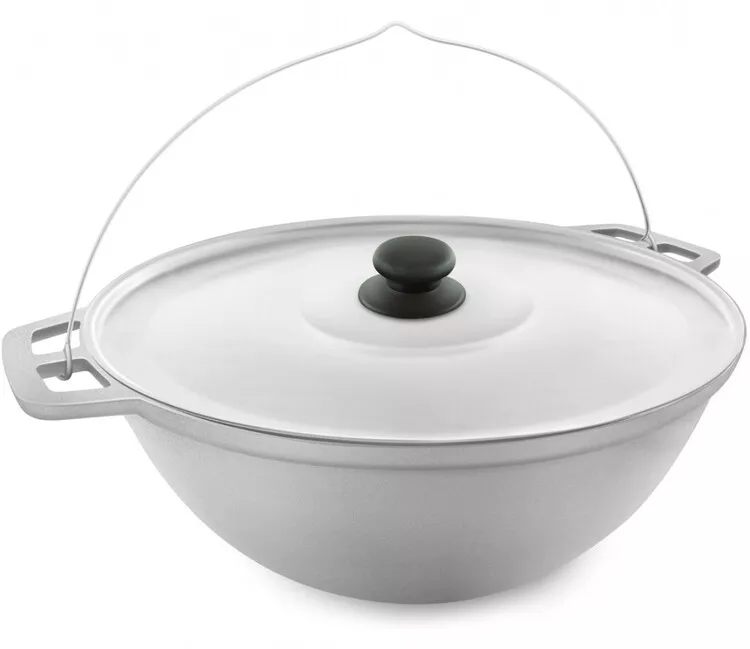 Казан глубокий "Походный" из непокрытого алюминия идеален для туризма.