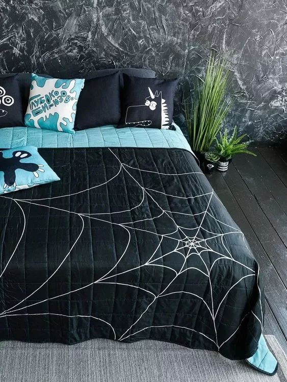 Покрывало "Irony" стеганое 220х240см двухстороннее, цв. черный зеленый