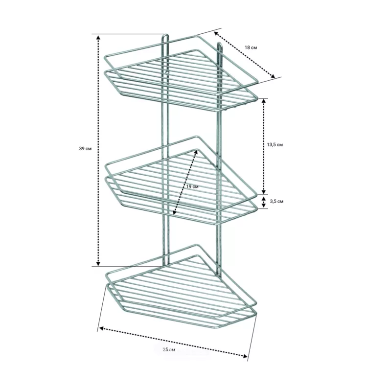 Полка для ванной, угловая, 3 секции 18х25х39см, цв.хром