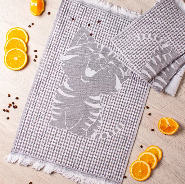 Полотенце кухонное "Котик" 40х60см, цв.серый