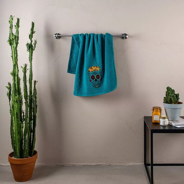 Полотенце махровое "Los Muertos" 50х90см, цв.бирюзовый, пл.450