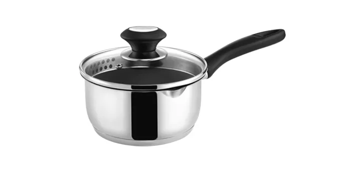 Изготовлено из нержавеющей стали с антипригарным покрытием. С носиком с каждой стороны и со стеклянной крышкой из нержавеющей стали с 2-мя видами отверстий для сцеживания. Трехслойное сэндвичевое дно.