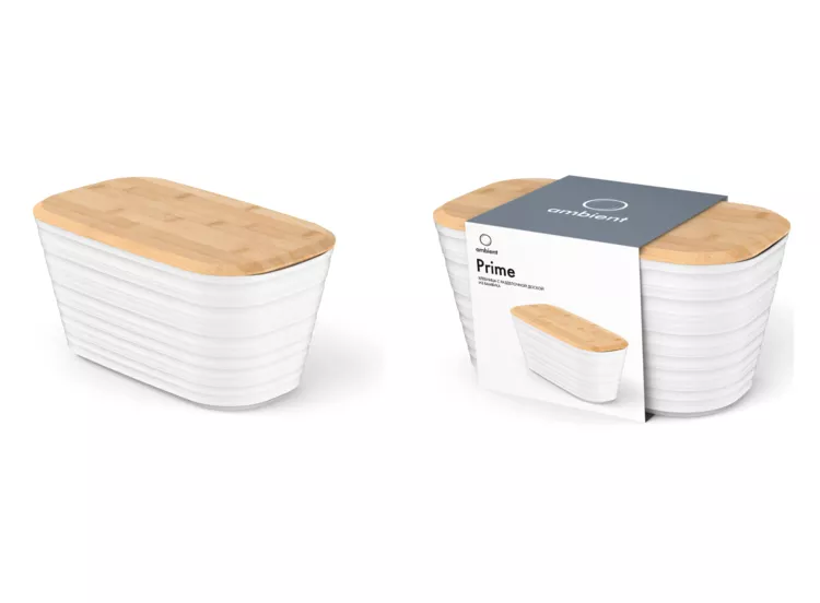 "Prime" Хлебница с бамбуковой крышкой 39,5х22,5х20,5см цв.молочно-белый