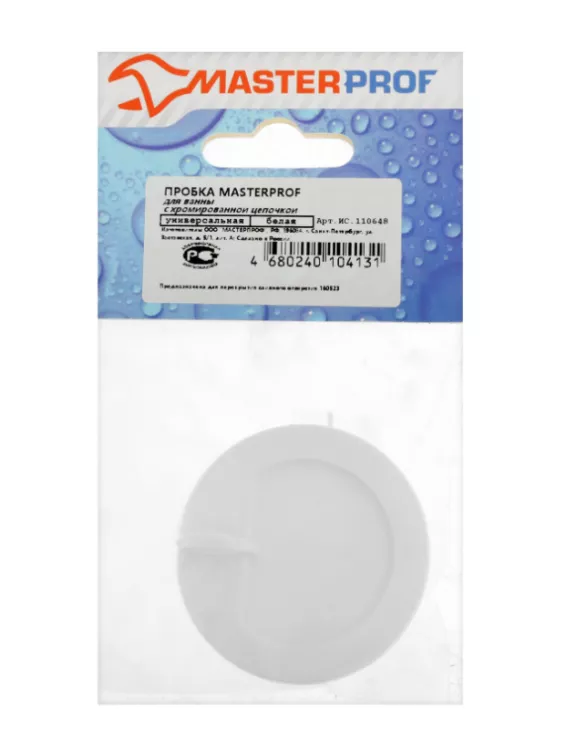 Пробка для ванны с цепочкой "Masterprof" d=4,5см, цв.белый