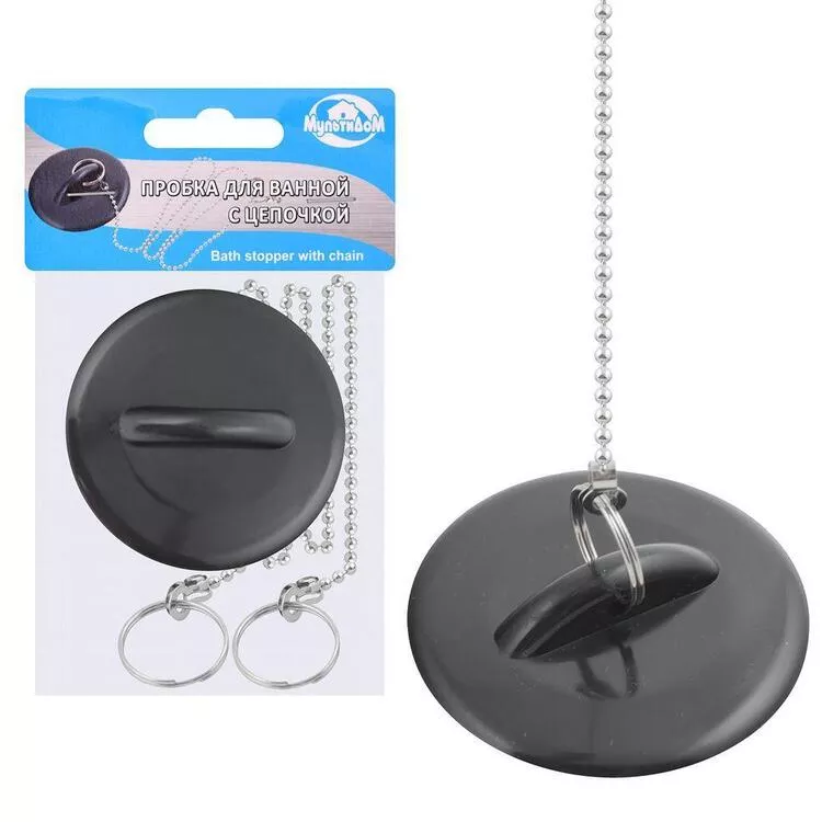 Пробка для ванны с цепочкой 4х6,5см, цв.металл, черный