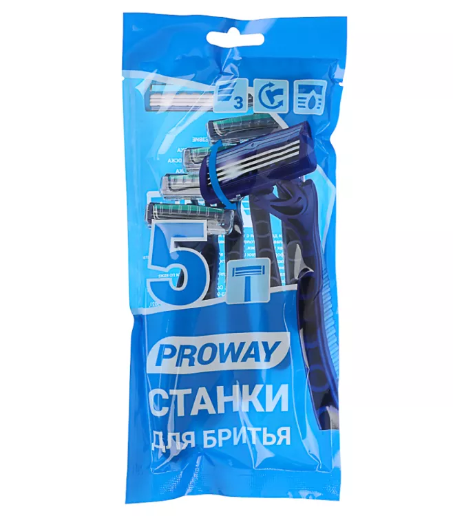 "PROWAY" Набор станков для бритья с тройным лезвием и силиконовой ручкой 5шт.