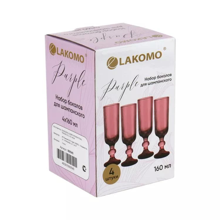 "Purple" Набор бокалов для шампанского 4шт. 160мл, цв.розовый, в п.у.