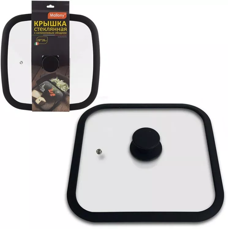 "QUADRATO" Крышка стекл. 28х28см с силикон. ободком, цв.черный