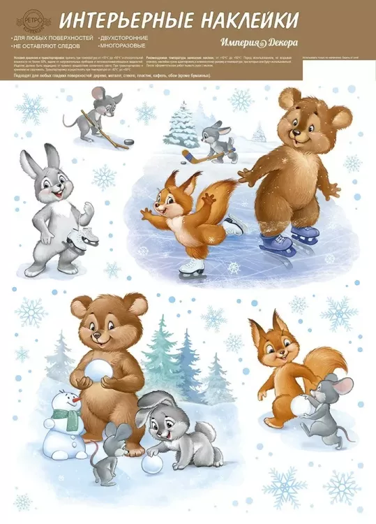 "Ретро" Наклейки декоративные "Зимние забавы" 24х33см