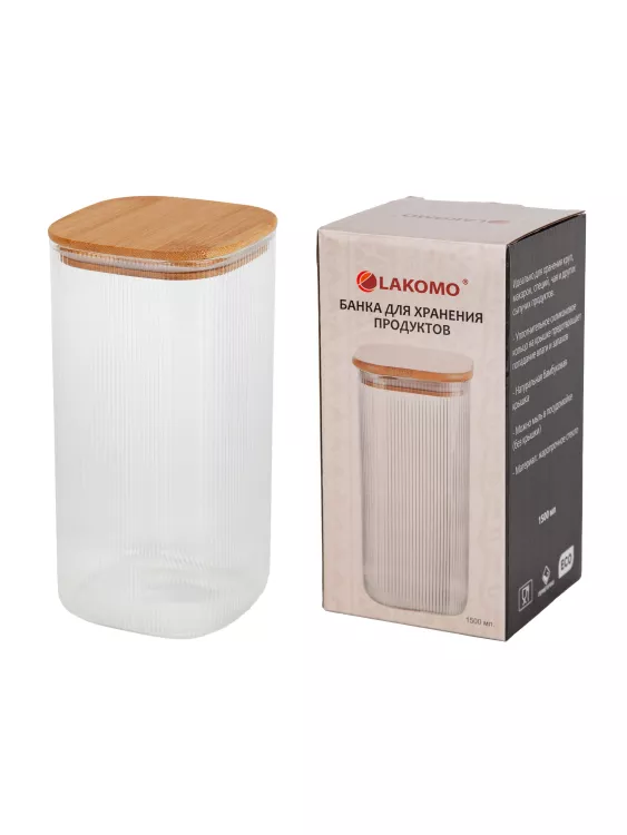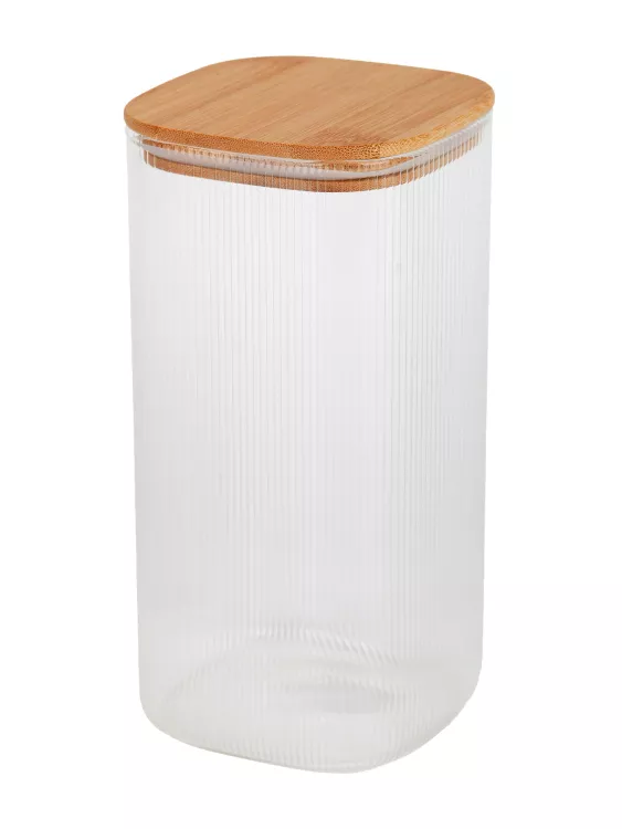 "Rib" Банка для хранения дерев. крышка 1500мл, квадратная, рифленая в п.у.