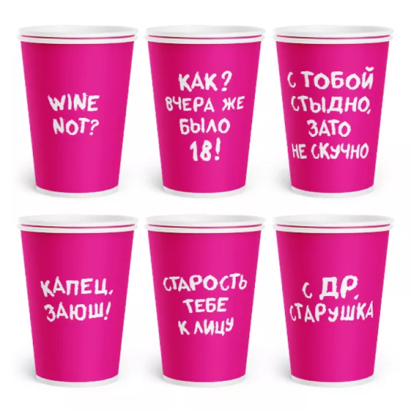 "С ДР, старушка" Набор бум.стаканов 6шт. 250мл