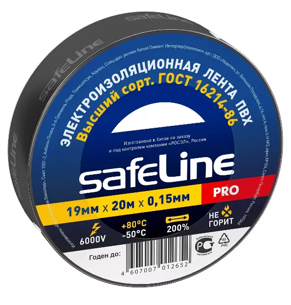 SAFELINE Лента изоляционная 1,9смх20м, цв.черный