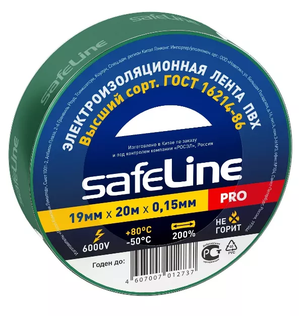 SAFELINE Лента изоляционная 1,9смх20м, цв.зеленый