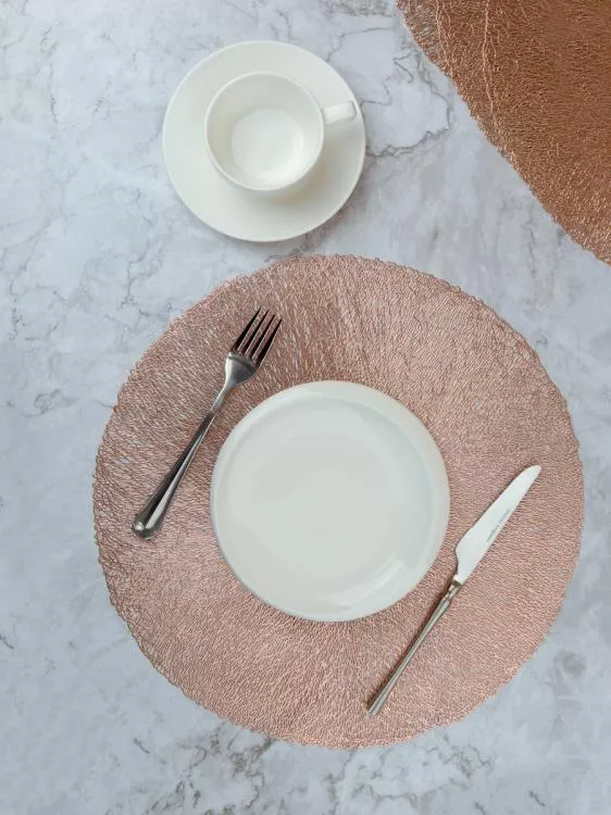 Эти круглые сервировочные салфетки, выполненные в виде изящного медного кружева, превратят любой обеденный стол в произведение искусства. Элегантный плейсмат не только служит надежной подставкой под тарелки, но и выступает в качестве существенного элемент...