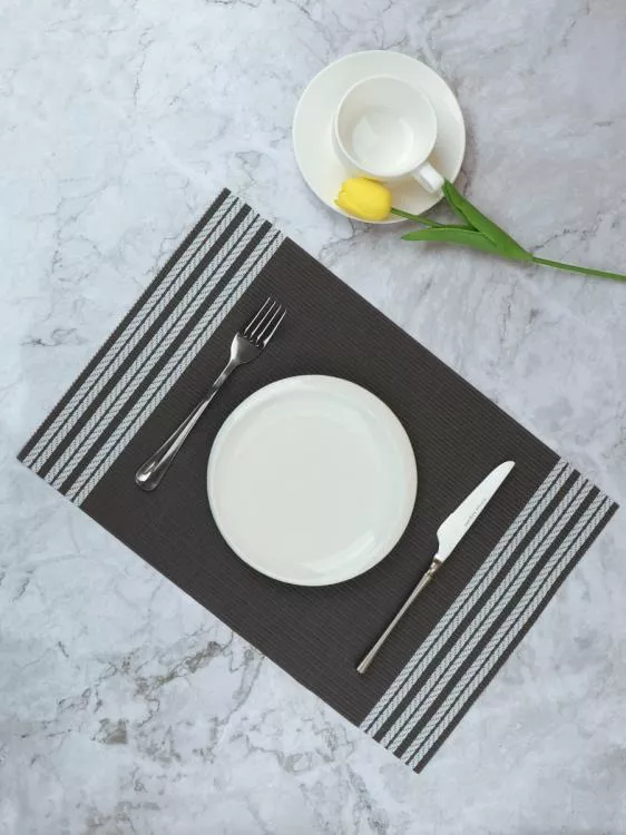 Очаровательная сетчатая сервировочная салфетка с белыми линиями – идеальный аксессуар для стола для современного дома. Этот прочный плейсмат служит не только утонченным декором, но и практичной подставкой под тарелки, обеспечивая защиту столешницы. Матери...